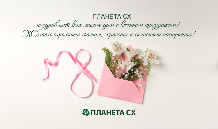 <h5><span style="color: #045f20;">От всей команды ПЛАНЕТА СХ поздравляем с Международным женским днем!</span></h5> <h6><span style="color: #197b30;">Пусть вас всегда окружает любовь, красота и внимание! </span></h6> <h6><span style="color: #197b30;">Пусть ваши стильные образы приковывают взгляды!</span></h6> <h6><span style="color: #197b30;">Спасибо, что вы с нами!</span></h6> <span style="color: #045f20;"><br> </span>