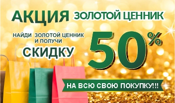 2. Если вы нашли Золотой Ценник, не обязательно покупать именно этот товар — вам предоставляется 50% скидка НА ВСЮ вашу покупку!