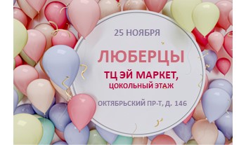 25 ноября в 10:00 ОТКРЫТИЕ МАГАЗИНА в г. Люберцы, Октябрьский пр-т, 146, ТЦ ЭЙ МАРКЕТ!